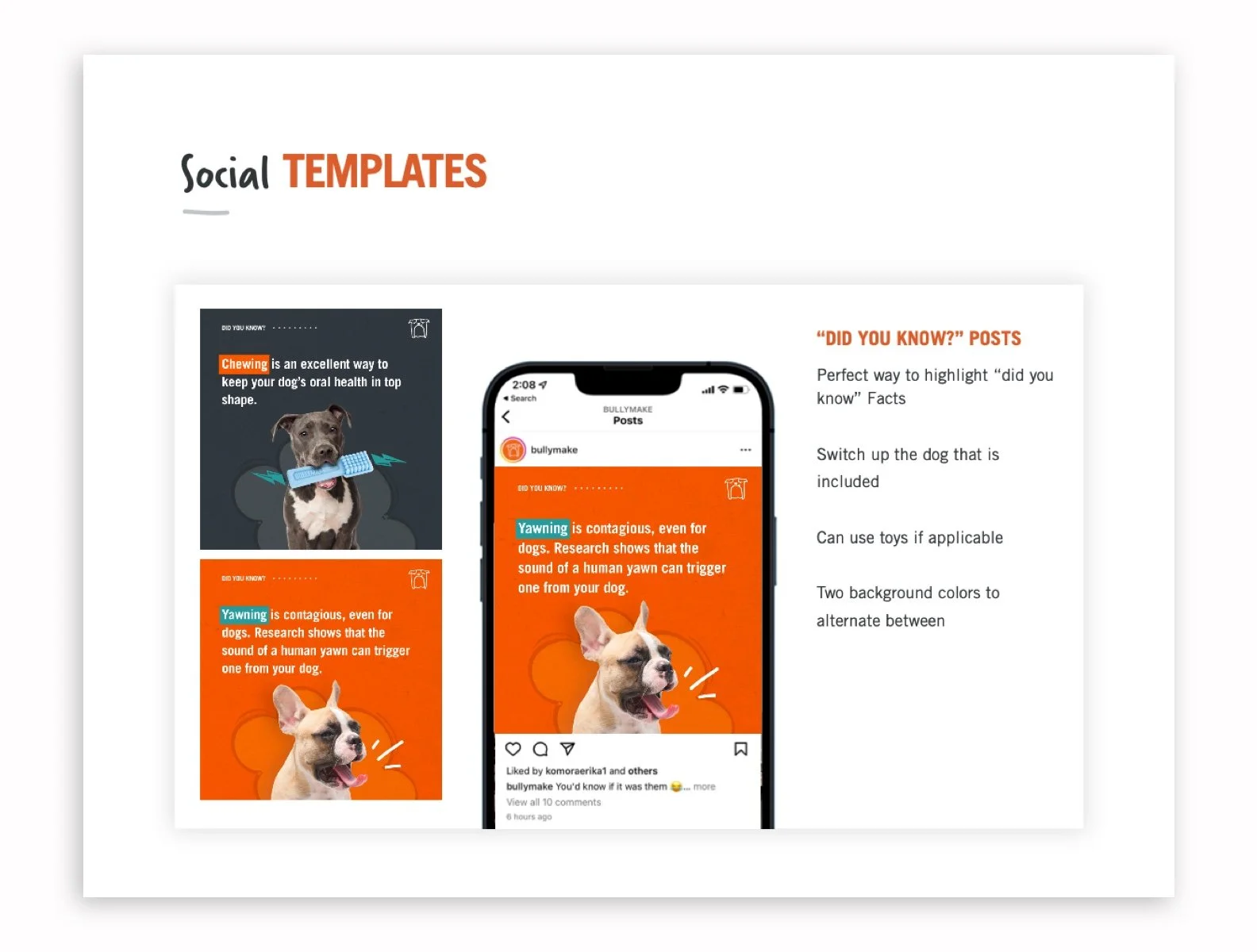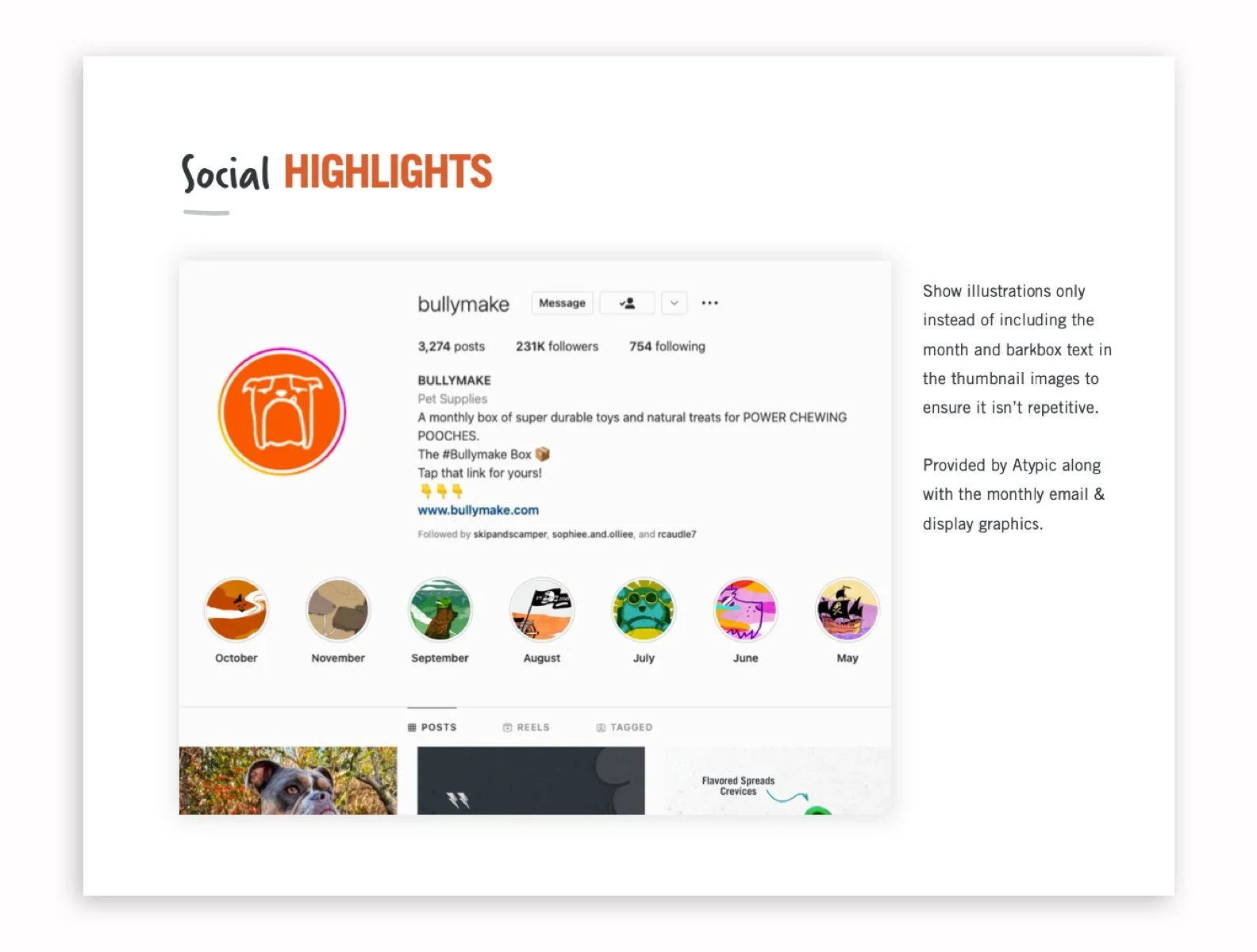 While primarily a subscription brand, Bullymake has begun to sell their products in brick and mortar stores, which has evolved the brand. They wanted to improve their social media presence to support this new arm of their business. I provided brand guidelines for their social media, as well as a number of templates to help them stay on brand.
