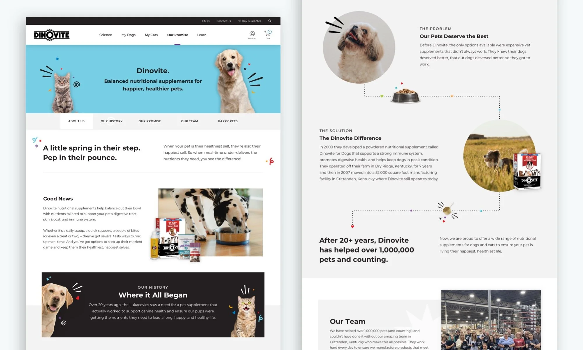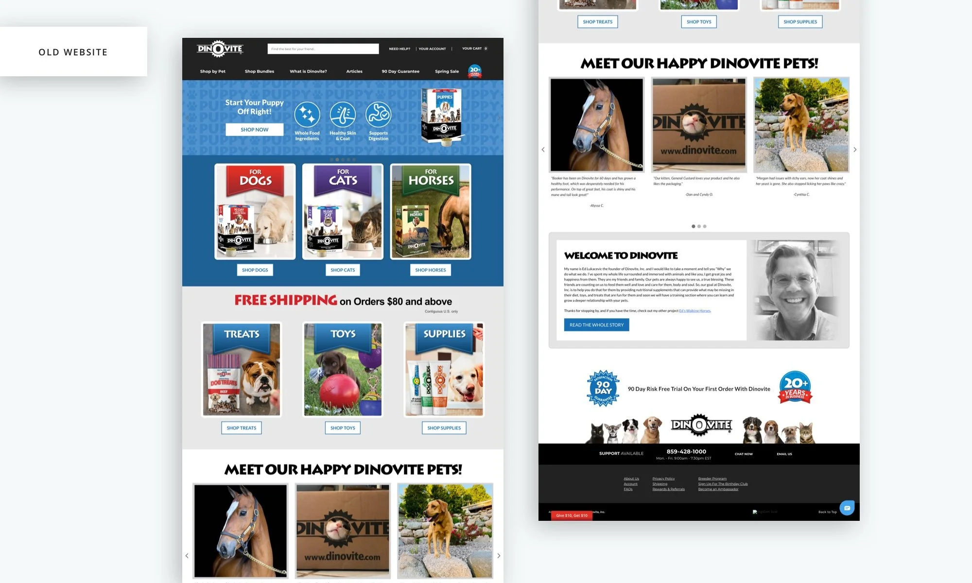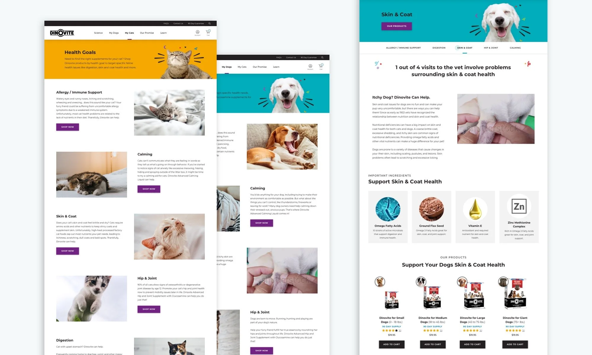 Dinovite has a 20 year history of providing supplements to support canine health and well-being. My redesign of their website focused on improving their clients’ experience by leading them effortlessly to the ideal products, based on the needs of their dog.