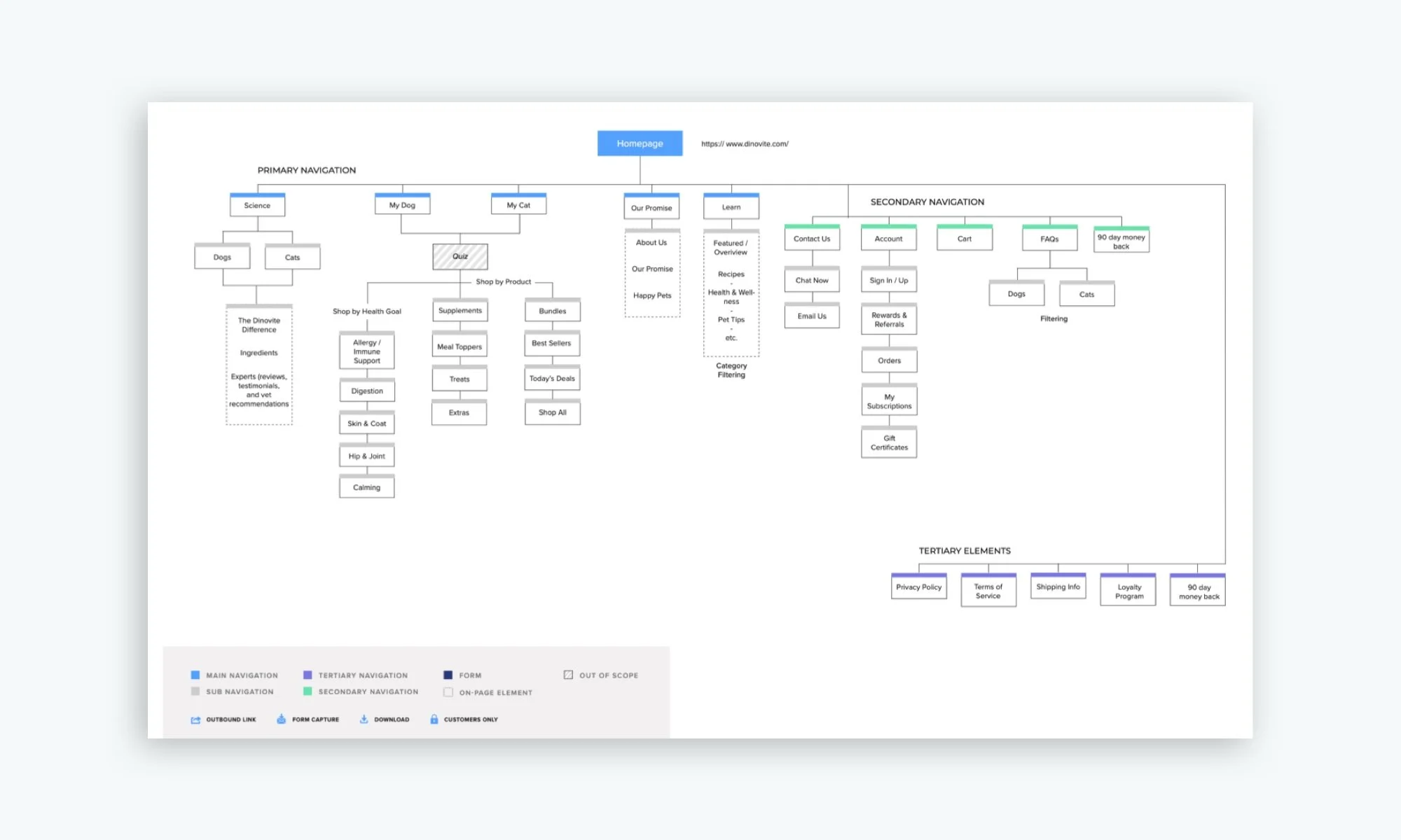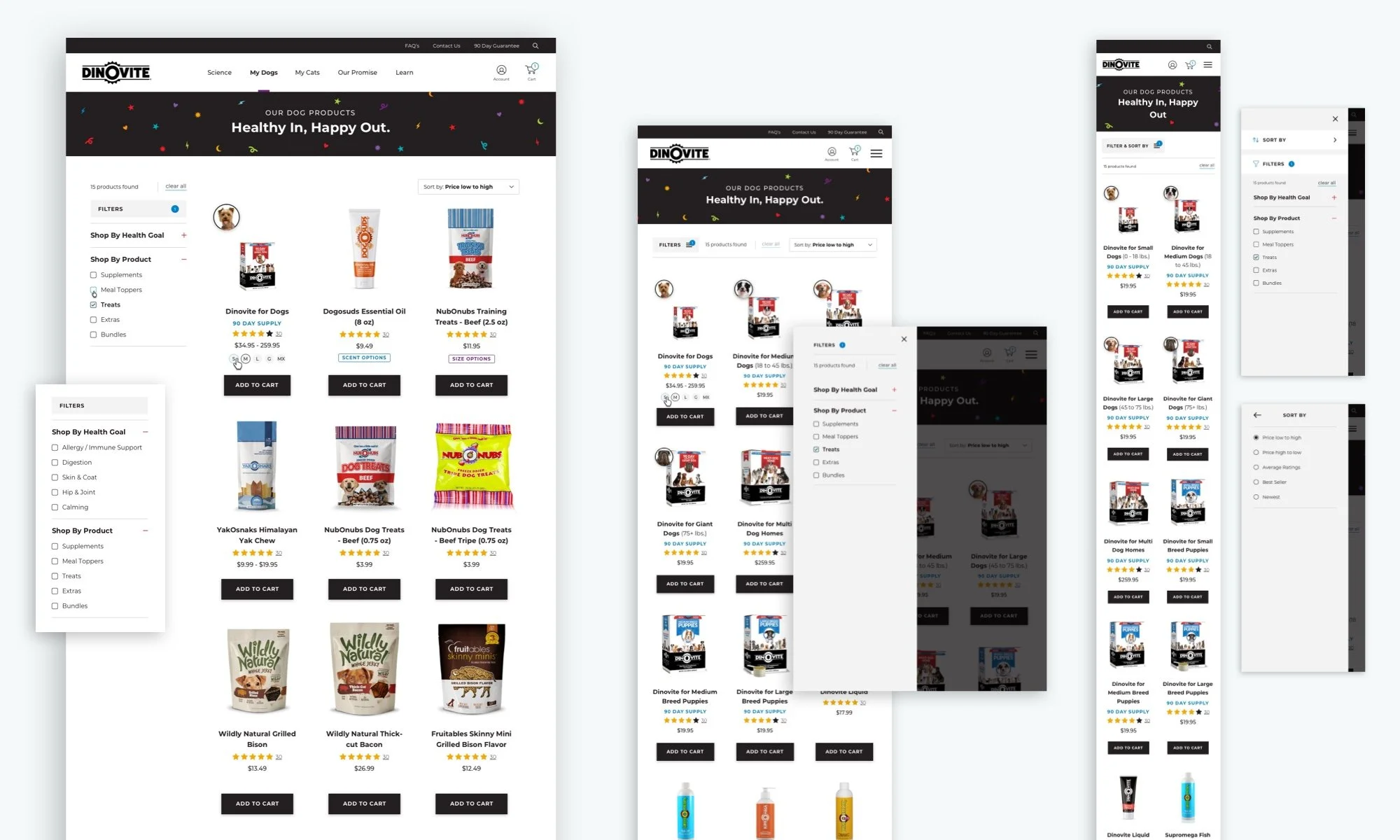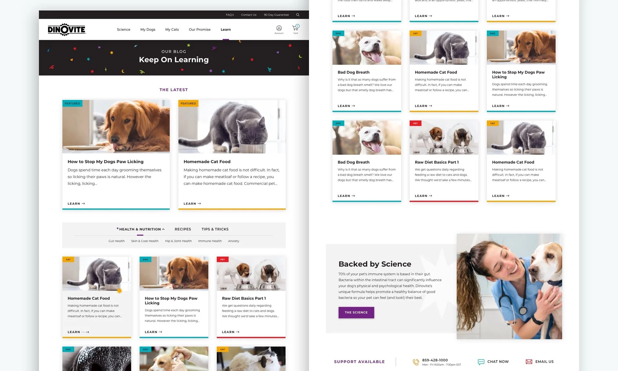 Dinovite has a 20 year history of providing supplements to support canine health and well-being. My redesign of their website focused on improving their clients’ experience by leading them effortlessly to the ideal products, based on the needs of their dog.