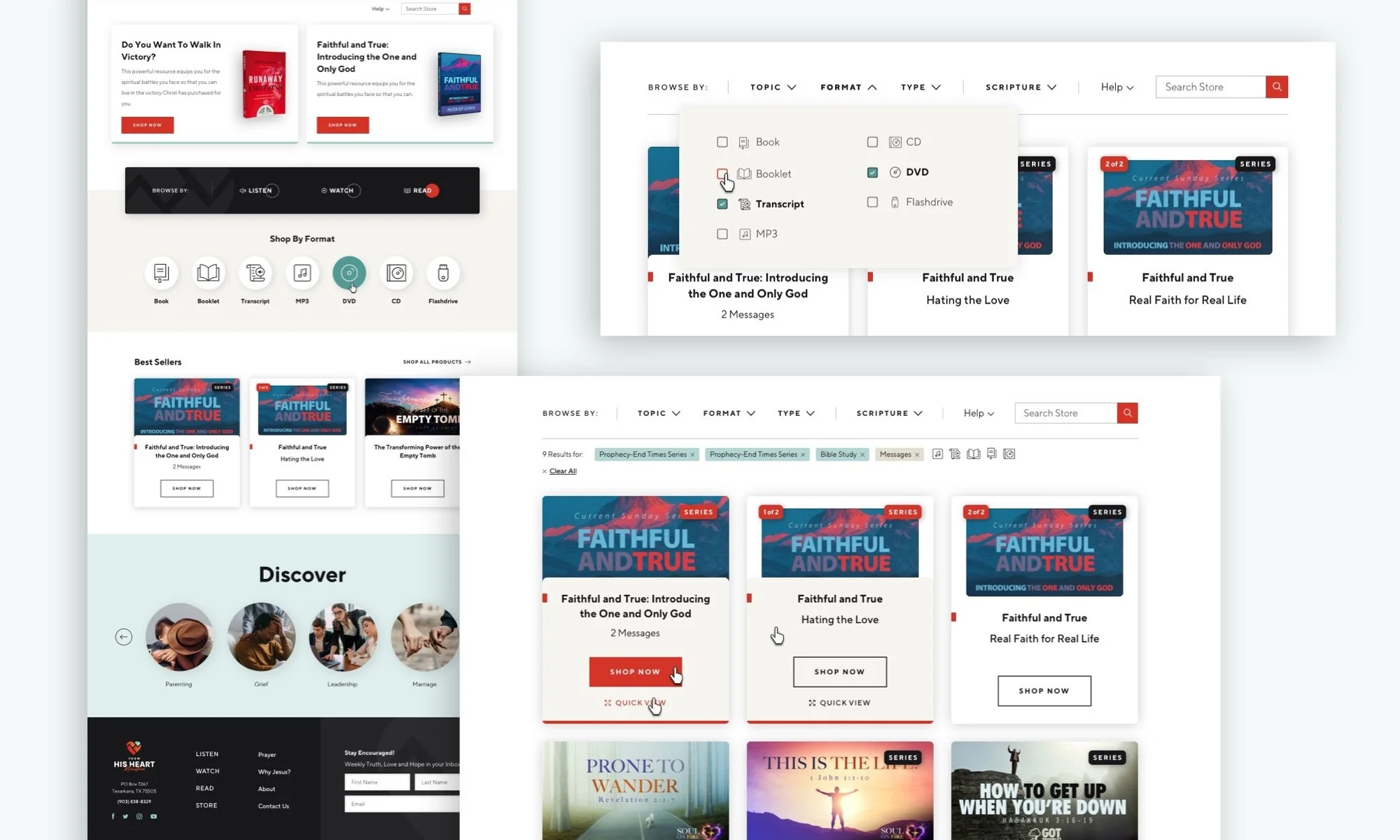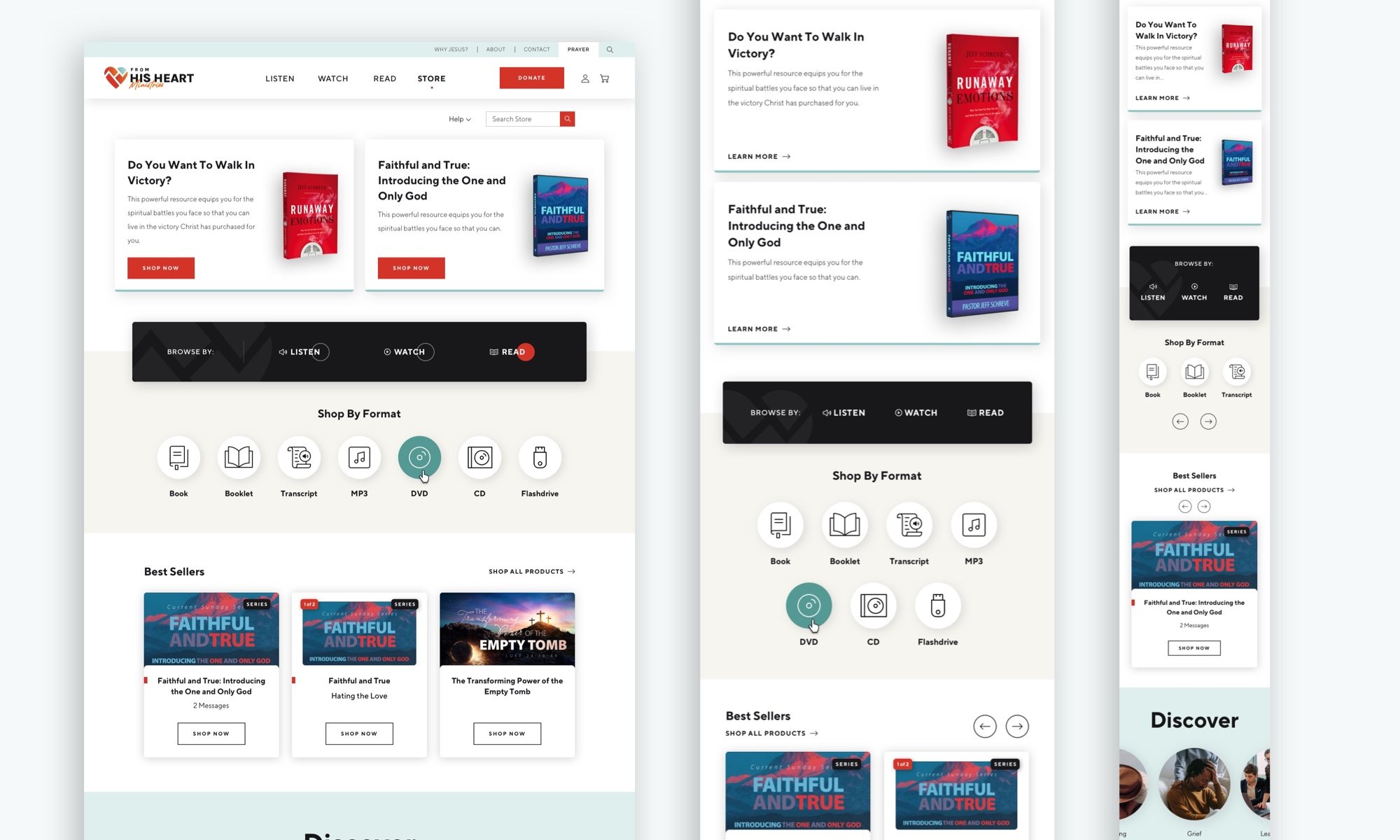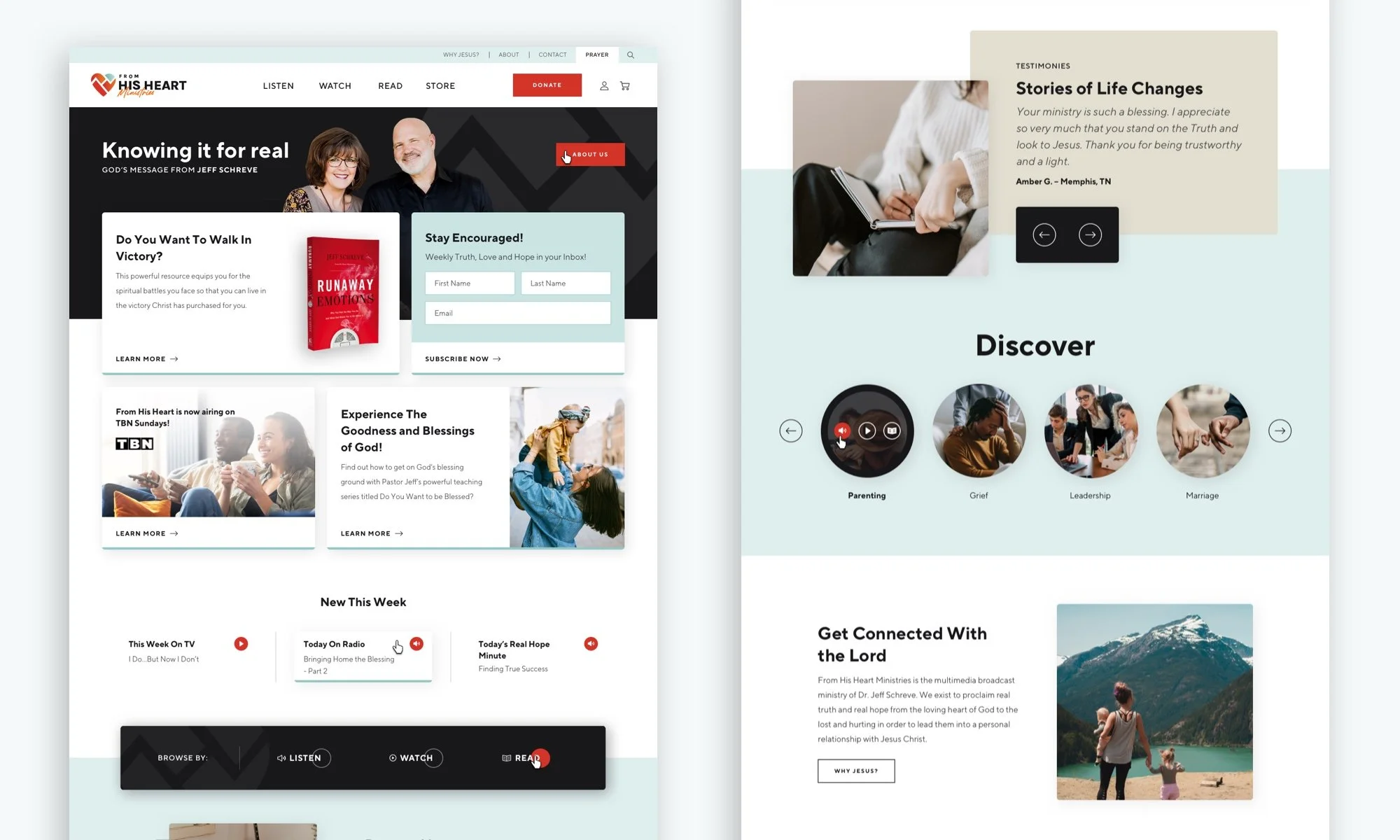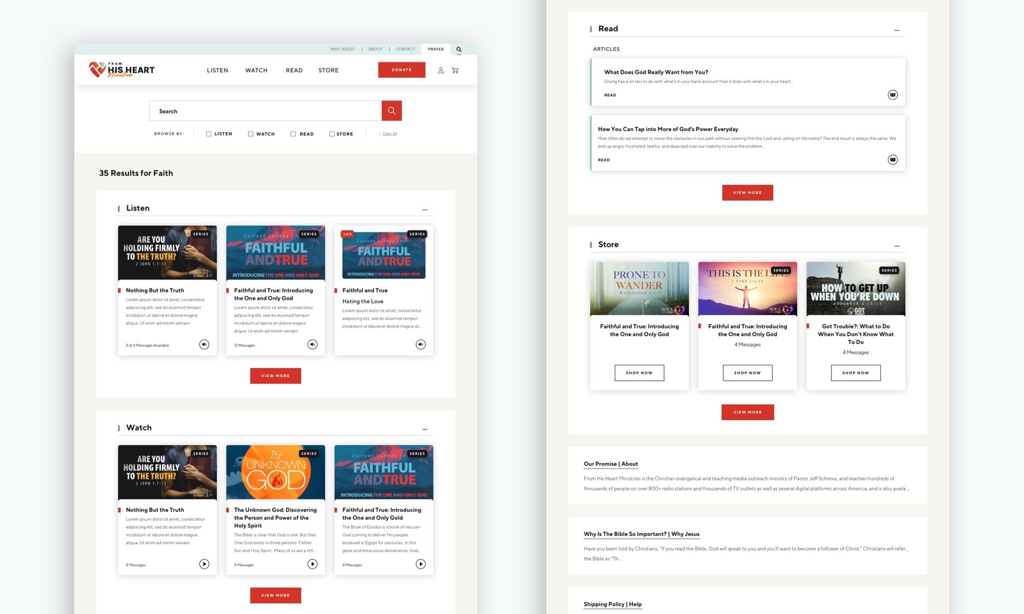 With the large volume of content being received in a variety of formats, they needed a better way to organize their website. In addition to this full custom website design, please also see the related From His Heart rebrand project.